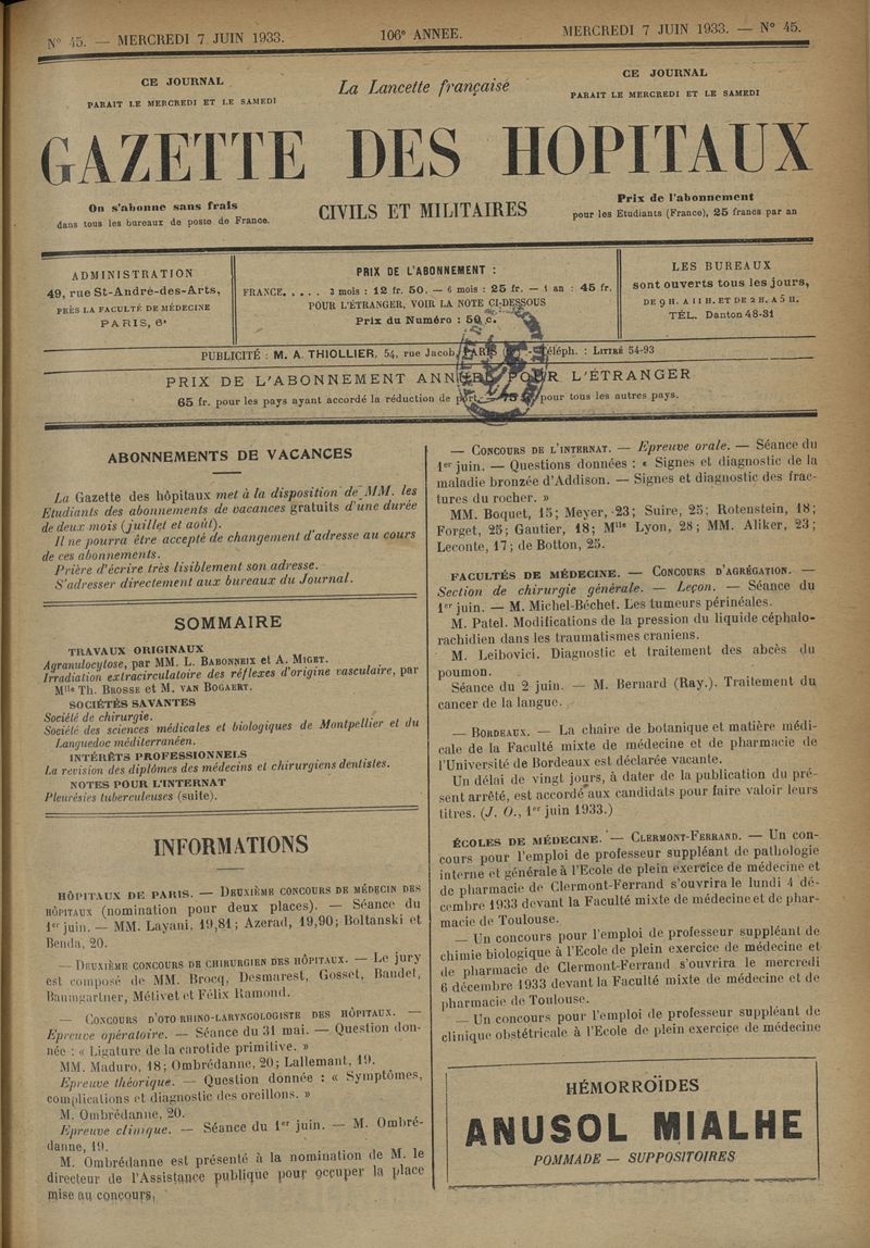 1933, tome 106e année. -