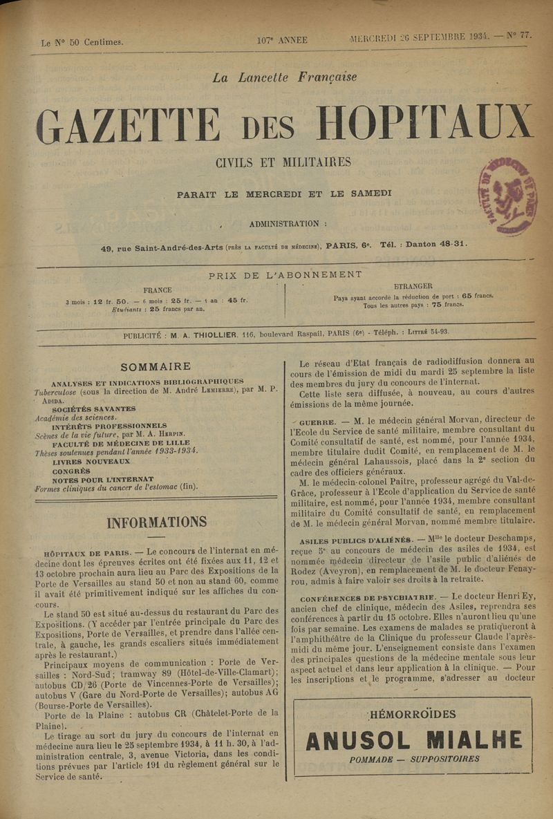 1934, tome 107e année. -