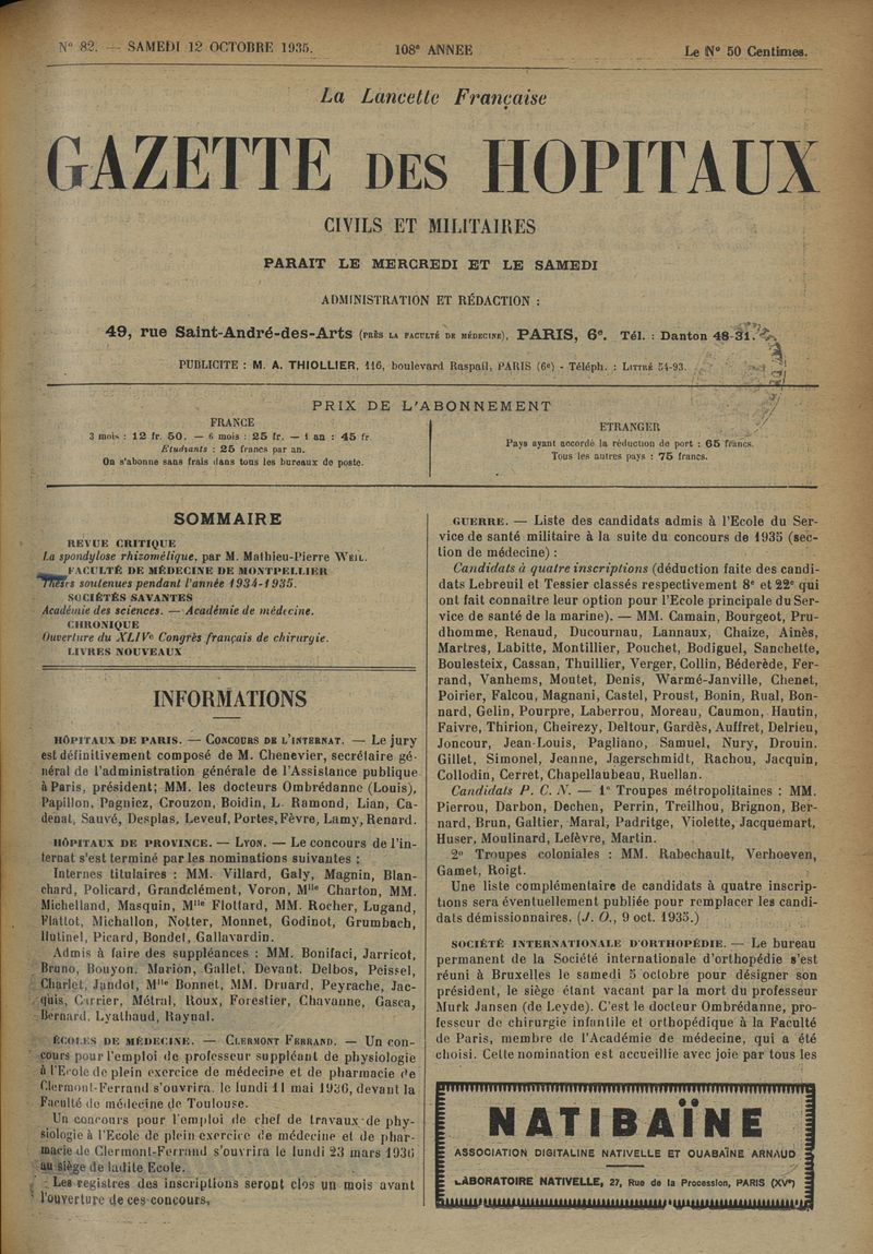 1935, tome 108e année. -
