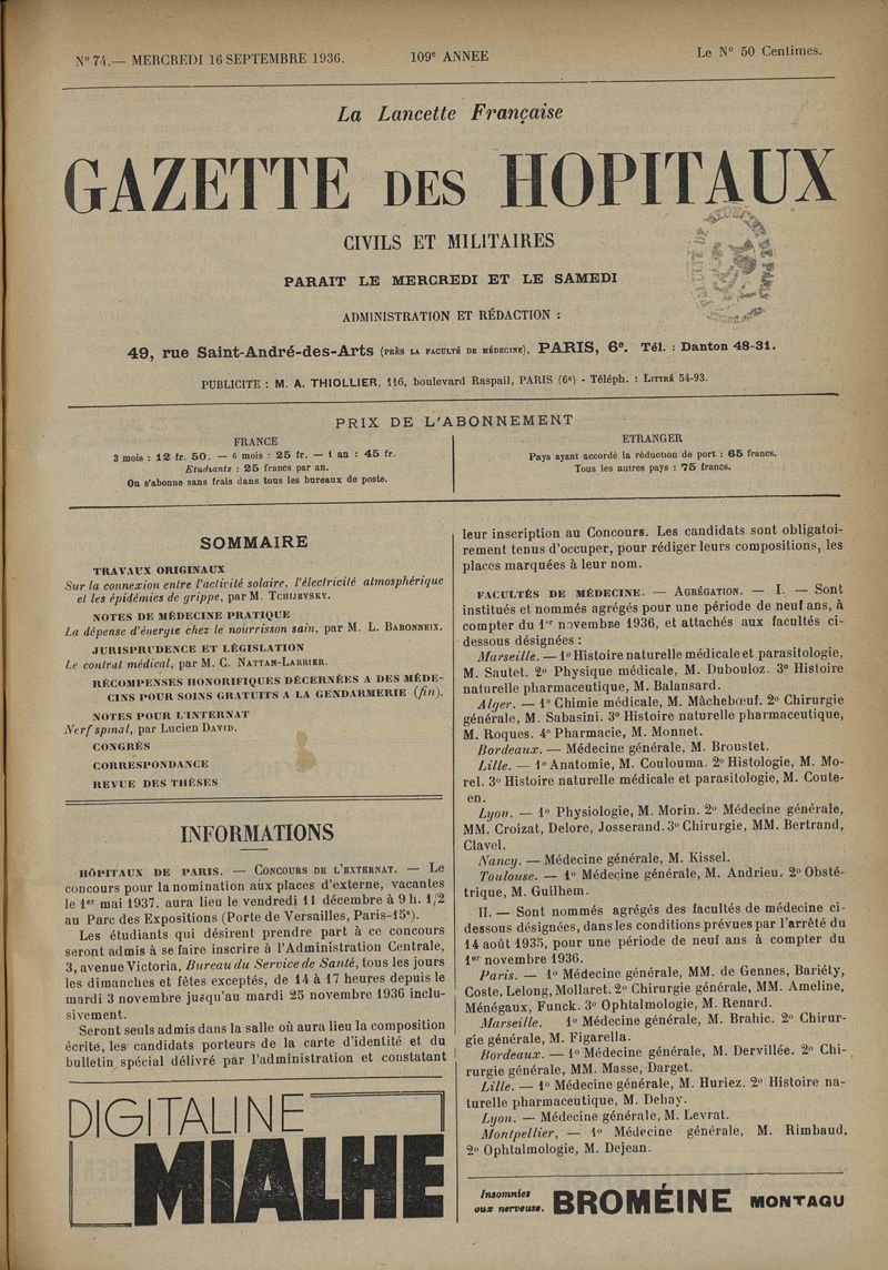 1936, tome 109e année. -