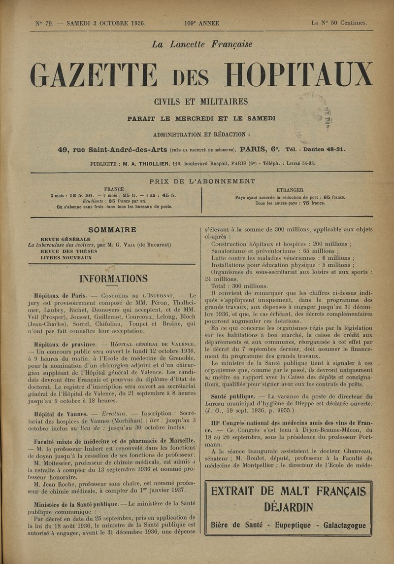 1936, tome 109e année. -