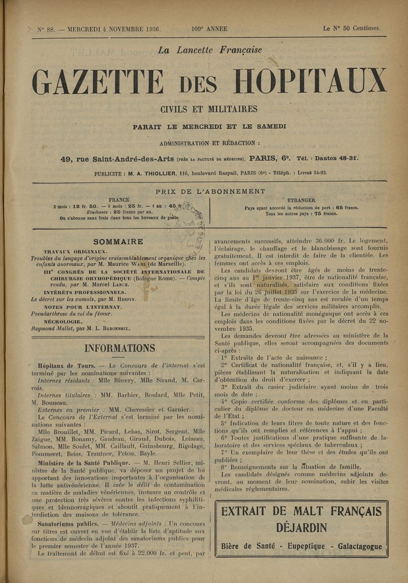 1936, tome 109e année. -