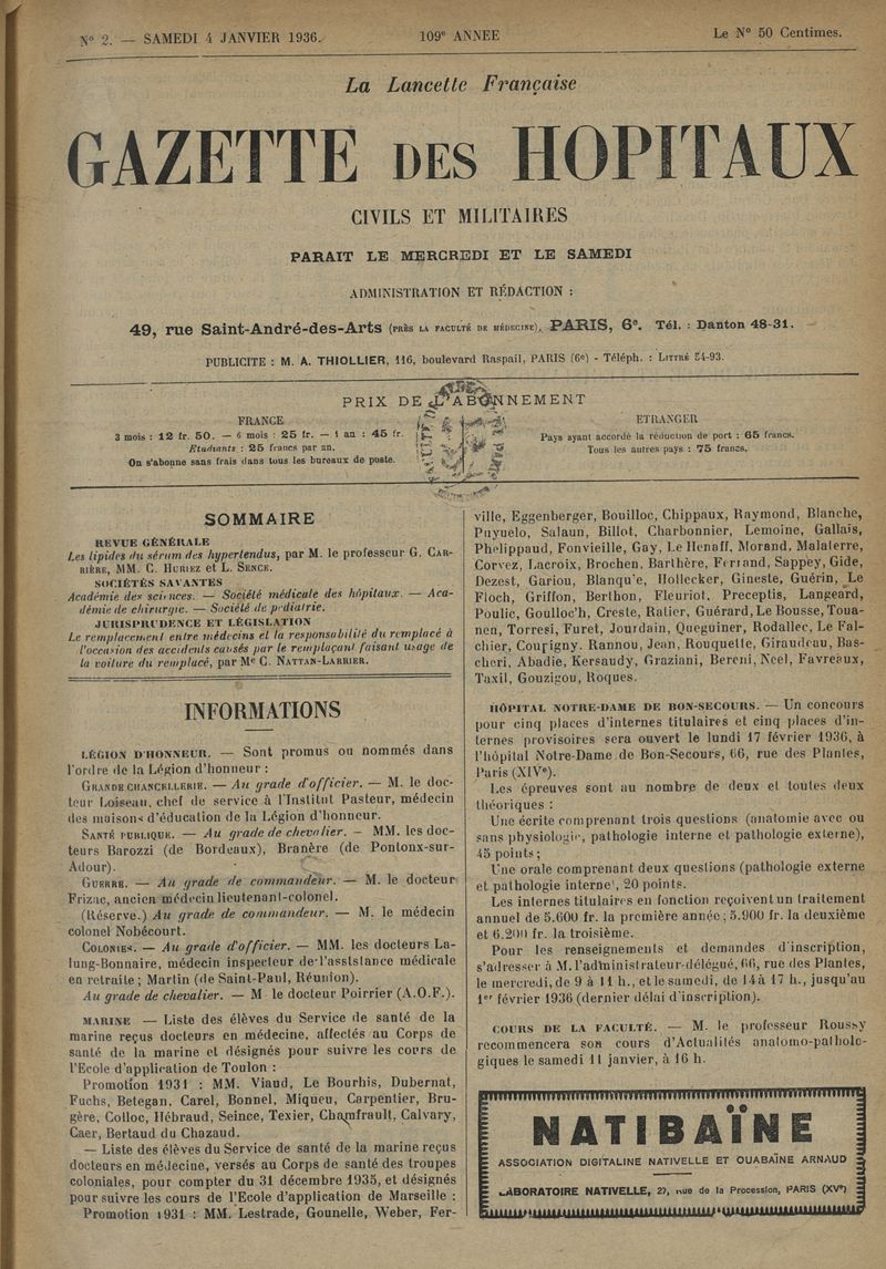 1936, tome 109e année. -