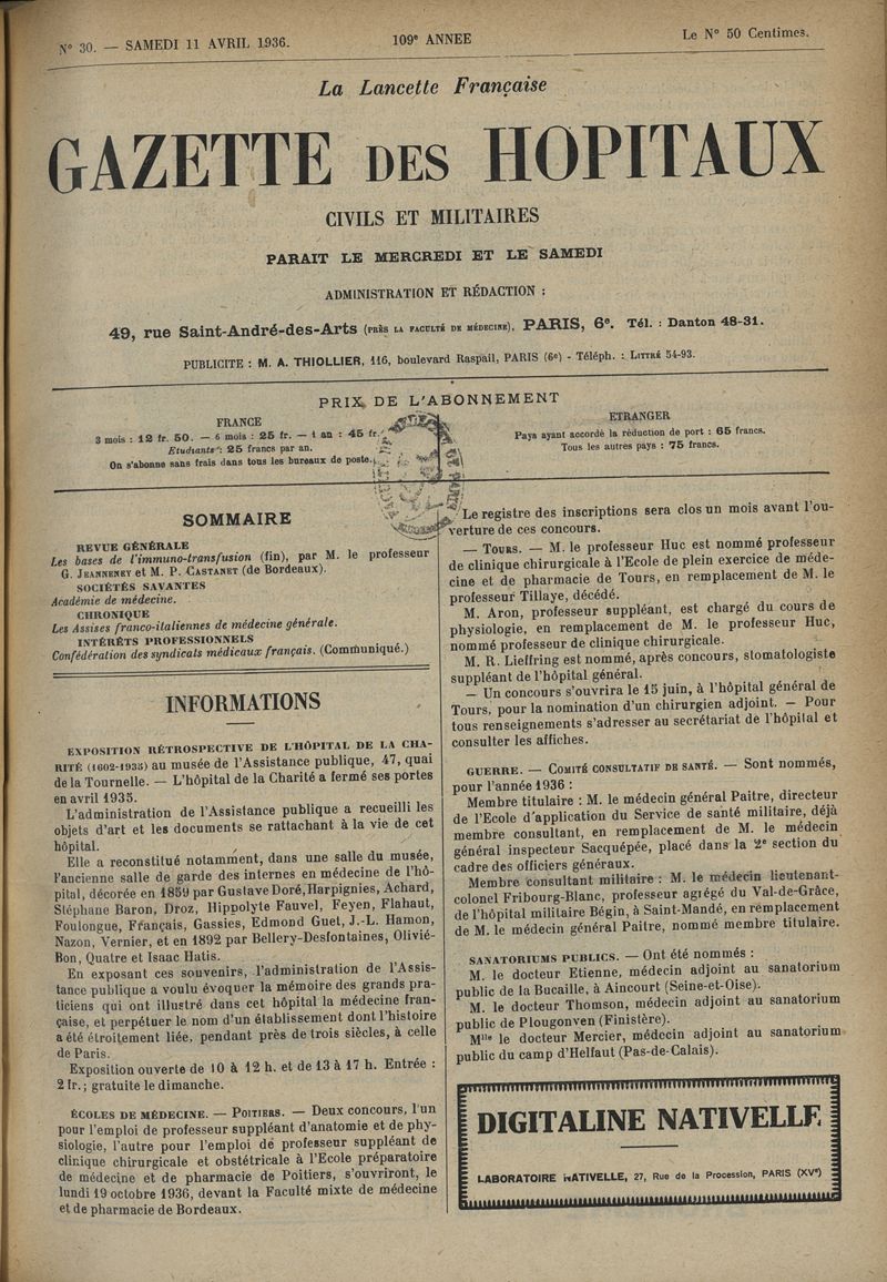 1936, tome 109e année. -