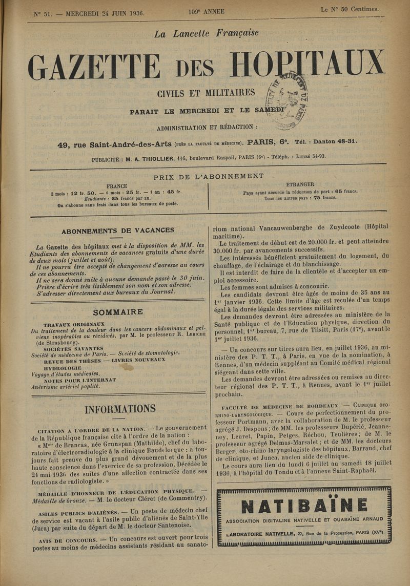 1936, tome 109e année. -