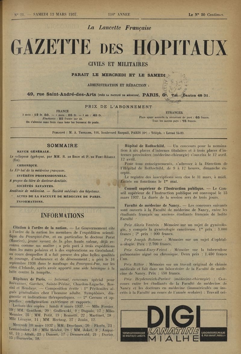 1937, tome 110e année. -