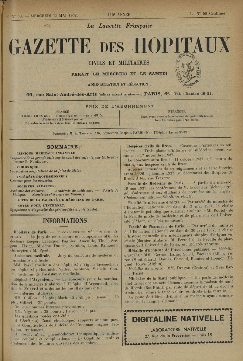 1937, tome 110e année. -