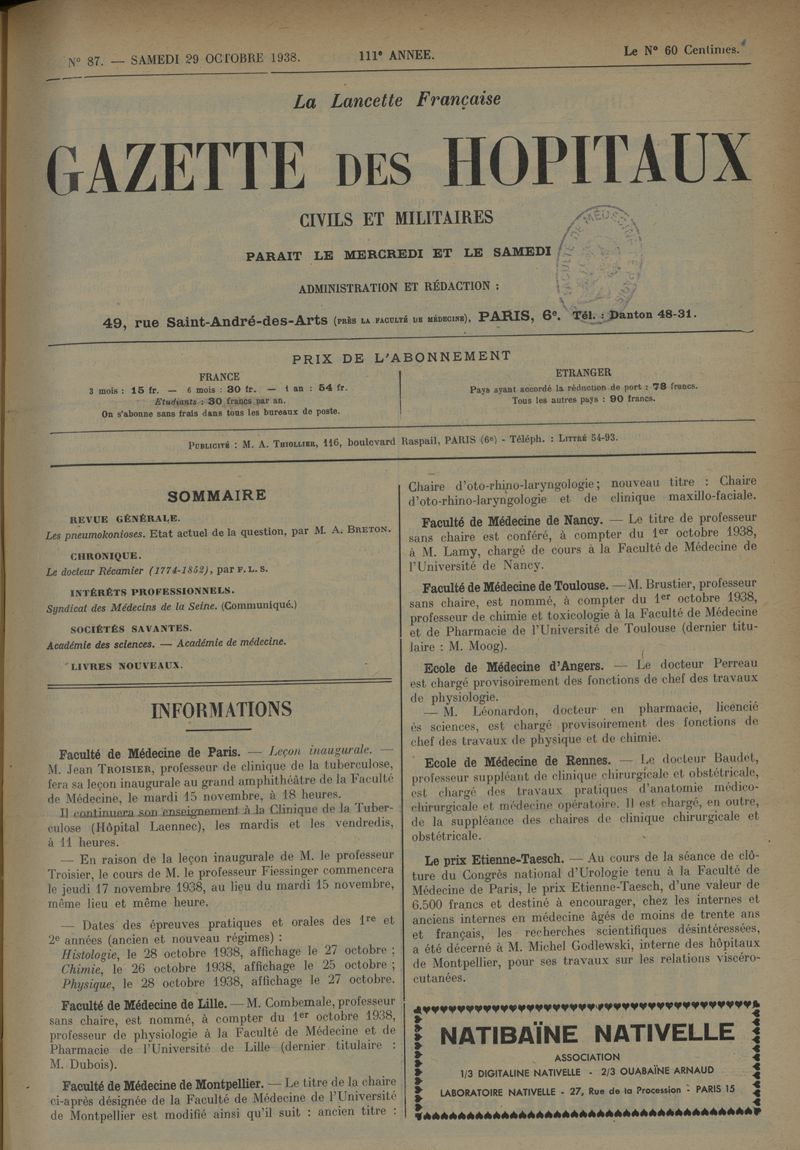 1938, tome 111e année. -