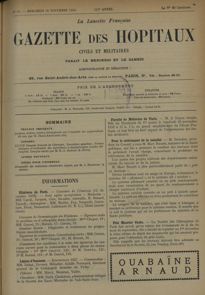 1938, tome 111e année. -