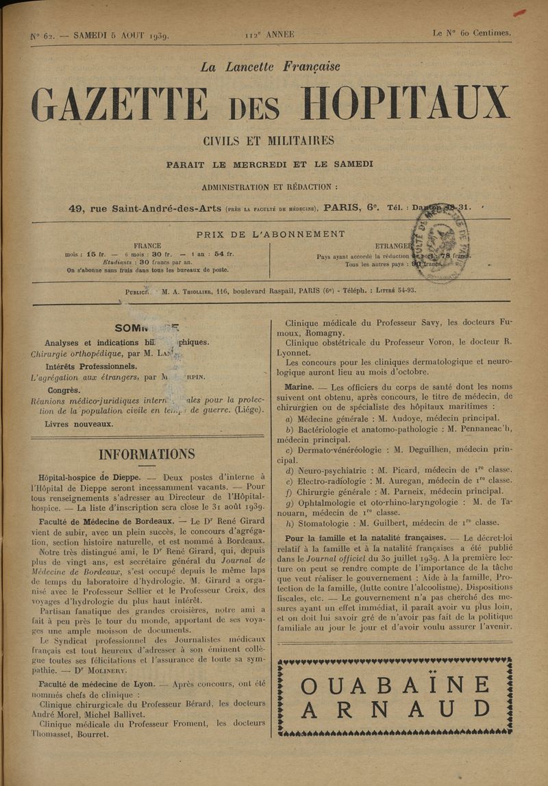 1939, tome 112e année. -
