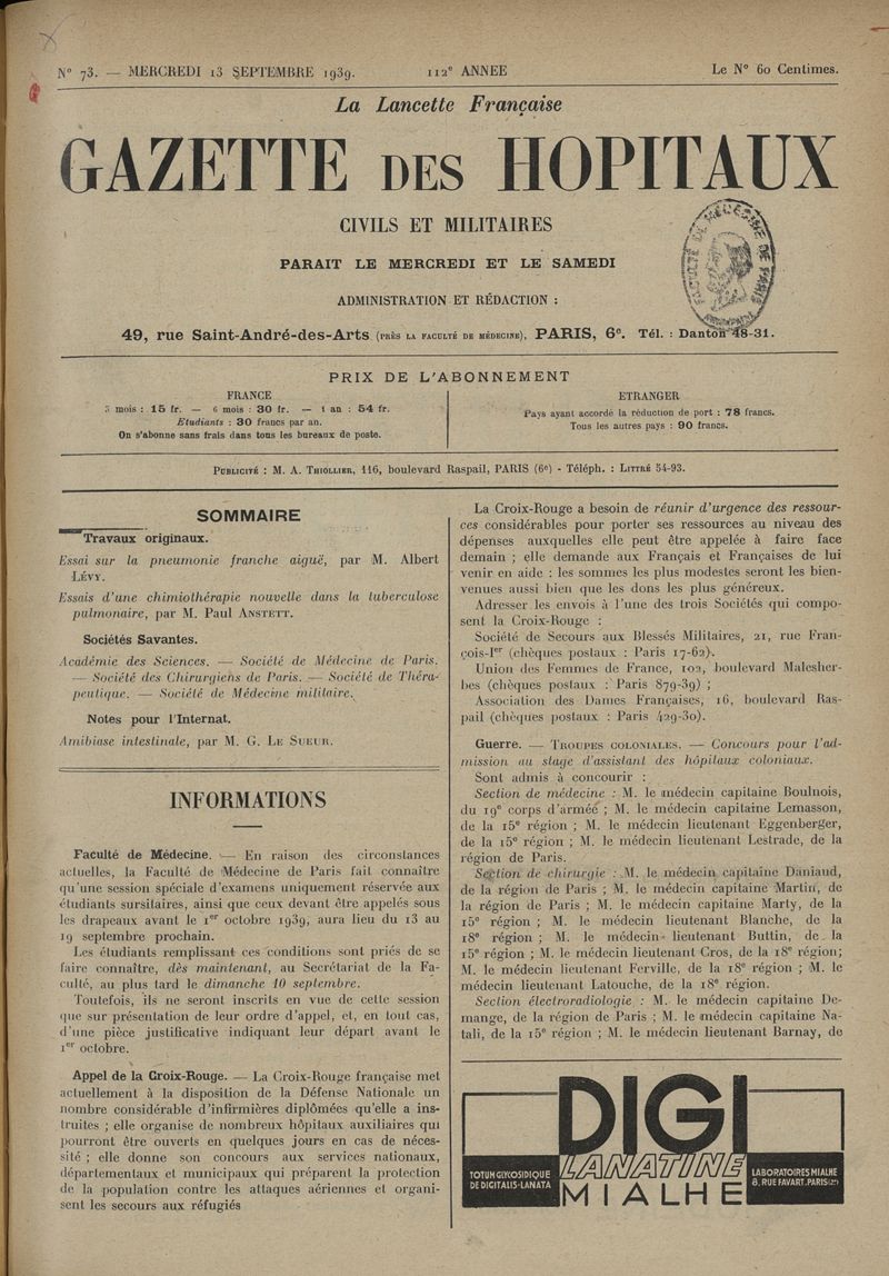 1939, tome 112e année. -