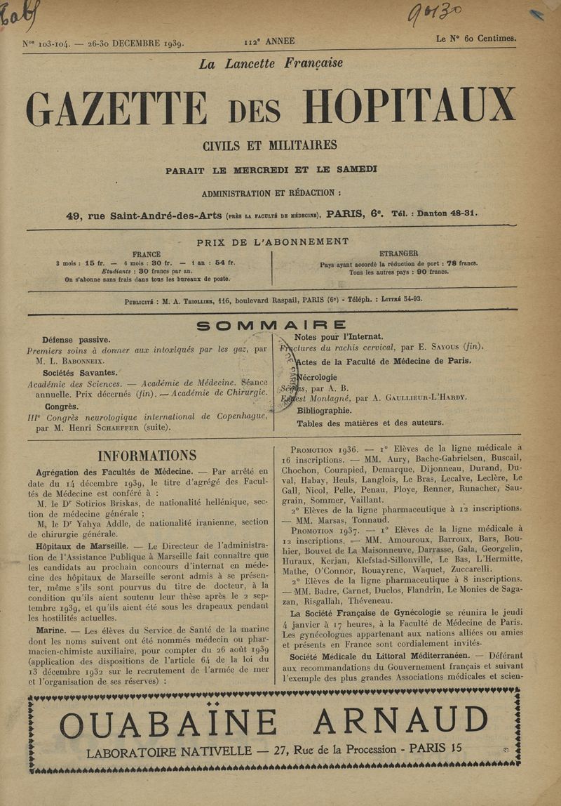 1939, tome 112e année. -