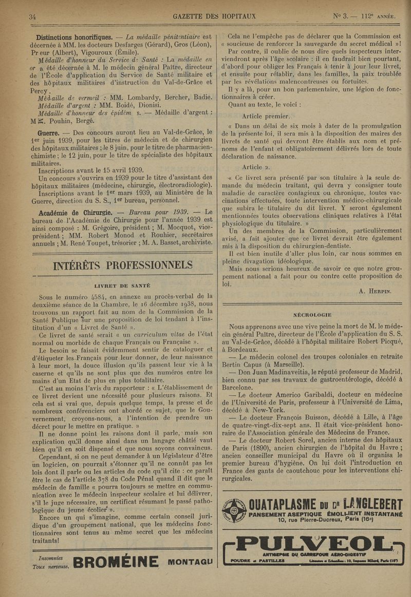 1939, tome 112e année. -