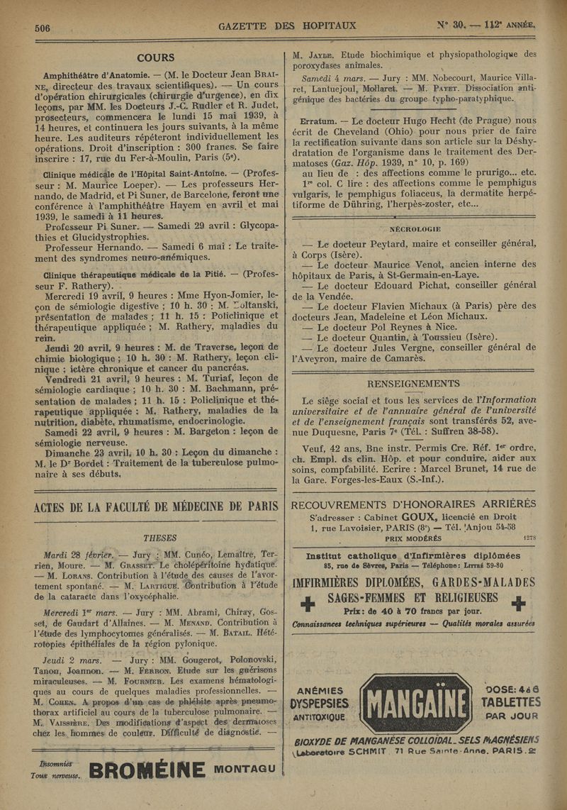 1939, tome 112e année. -