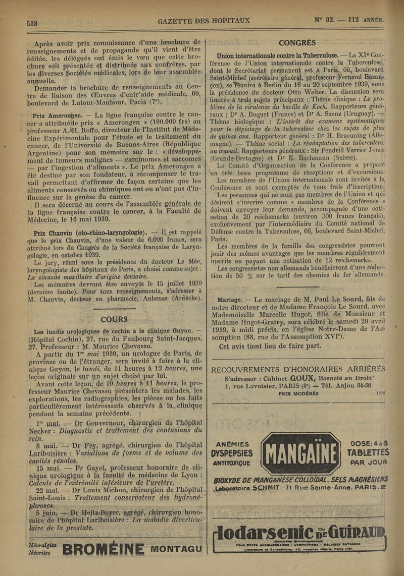 1939, tome 112e année. -