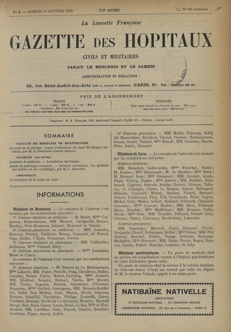 1939, tome 112e année. -