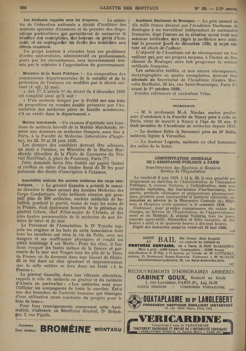 1939, tome 112e année. -