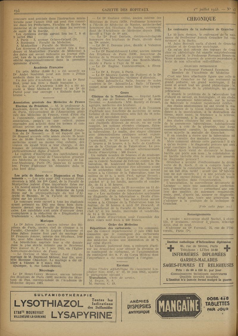 1943, tome 116e année. -