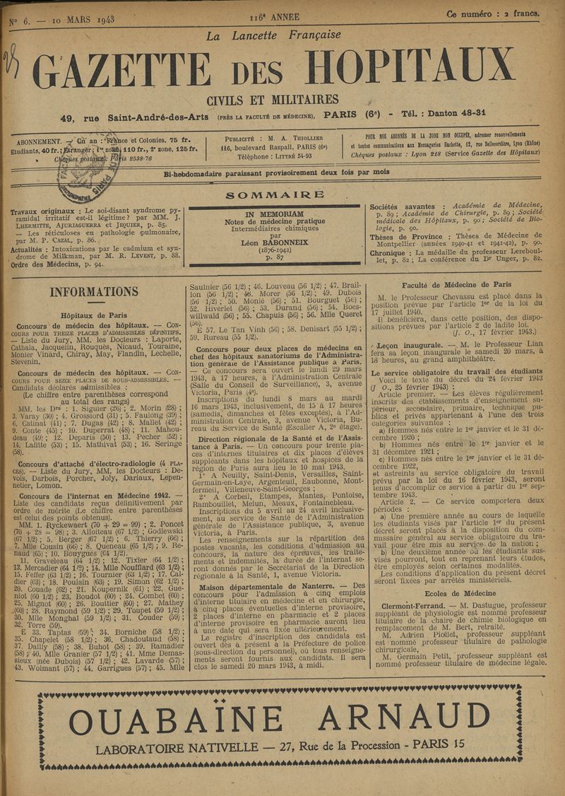 1943, tome 116e année. -