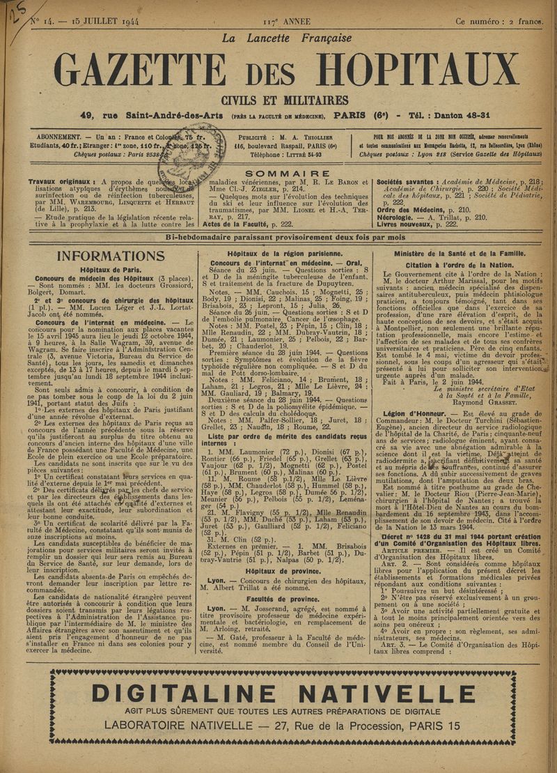 1944, tome 117e année. -