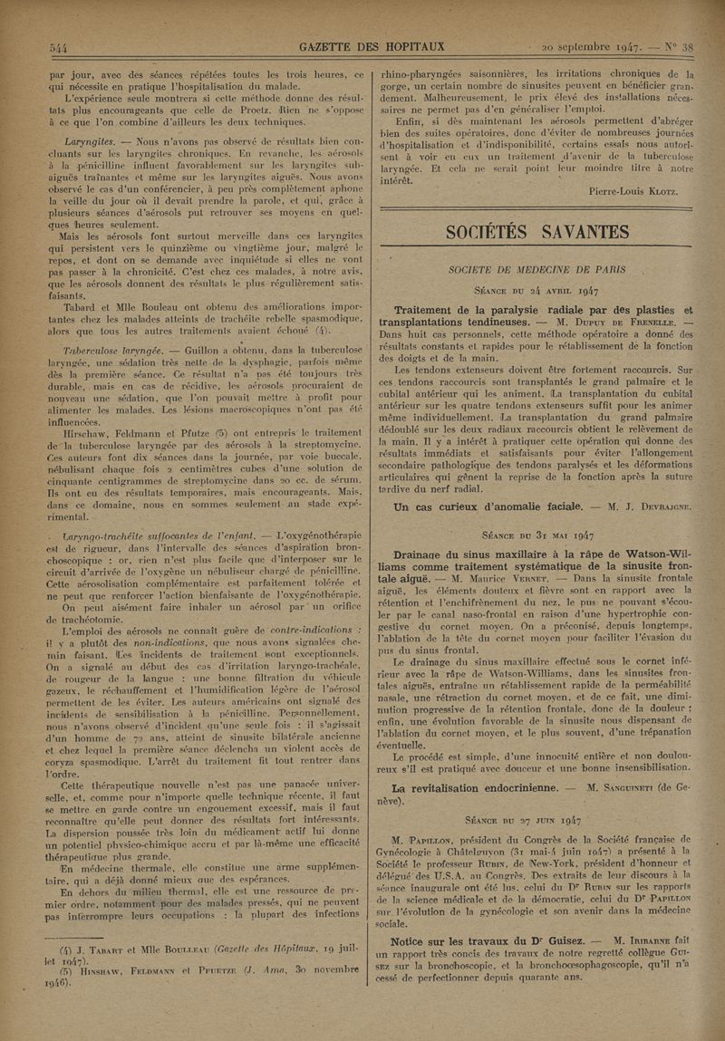 1947, tome 120e année. -