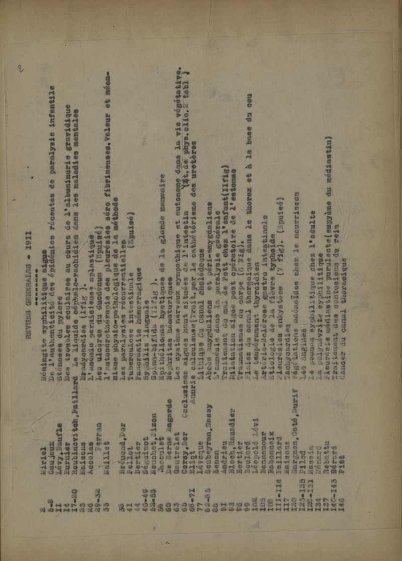 Table 1887 - 1909 et table dactylographiée 1910-1914. -