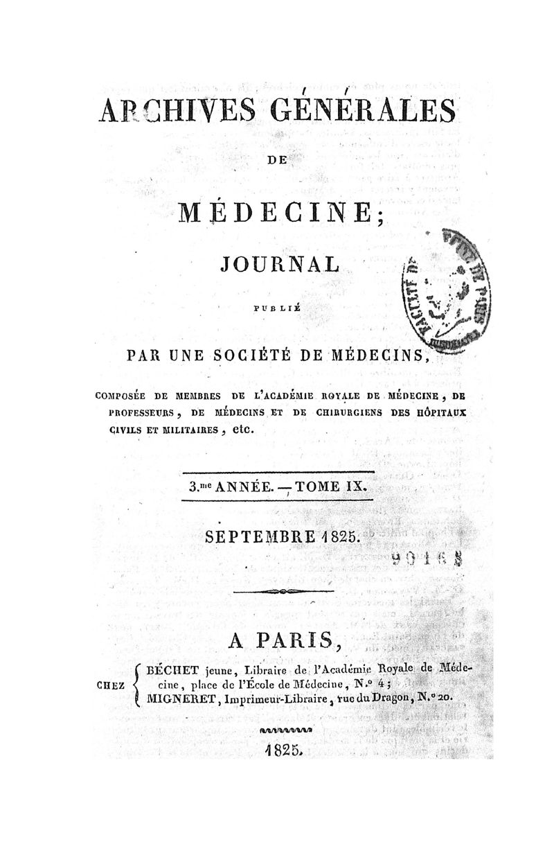 1825, série 1, n° 09. -
