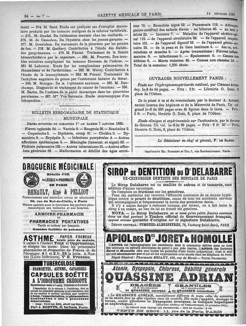 1885, série 7, n° 02. -