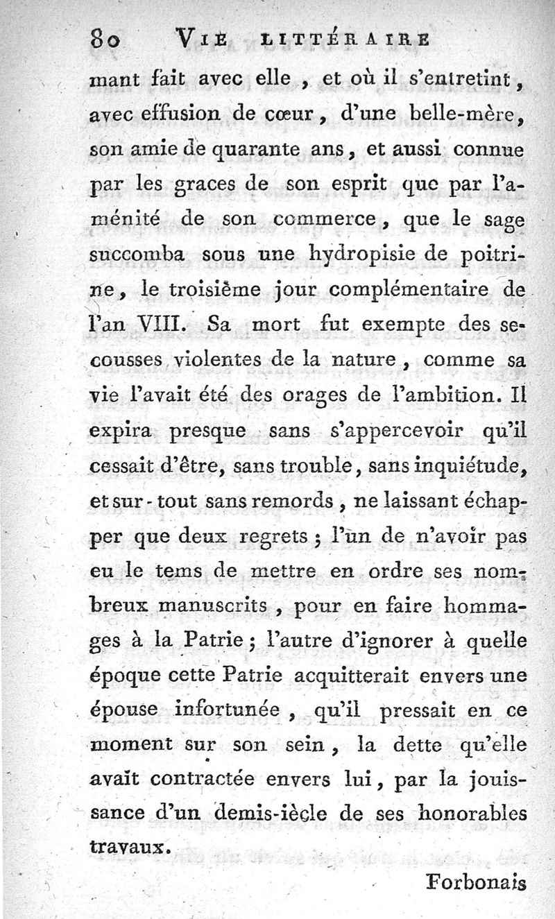 Vie littéraire de Forbonais, ...