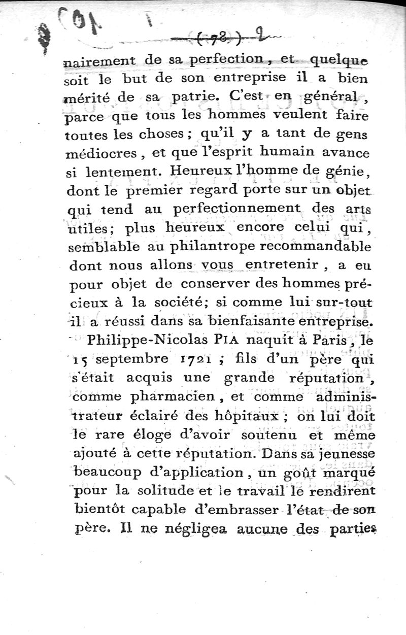 Notice historique sur le Citoyen Pia ; lue au Lycée républicain, le 29 messidor an VII, par le Citoyen Silvestre