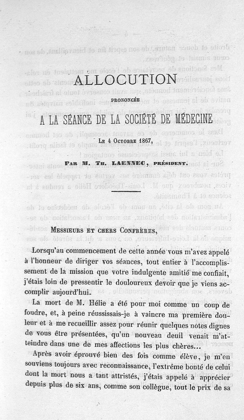 [Eloge de L.Th. Hélie], allocution prononcée à la séance de la Société de médecine le 4 octobre 1867