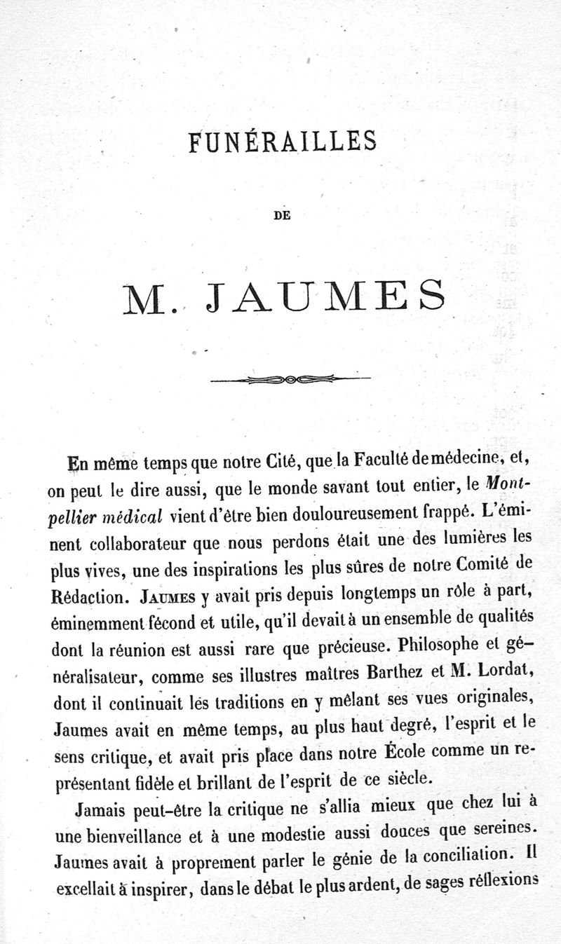 Funérailles de M. Jaumes,... le 15 février 1868