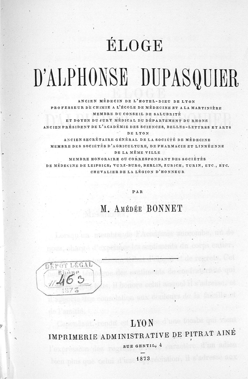 Lyon, Impr. de Pitrat ainé, 1873.