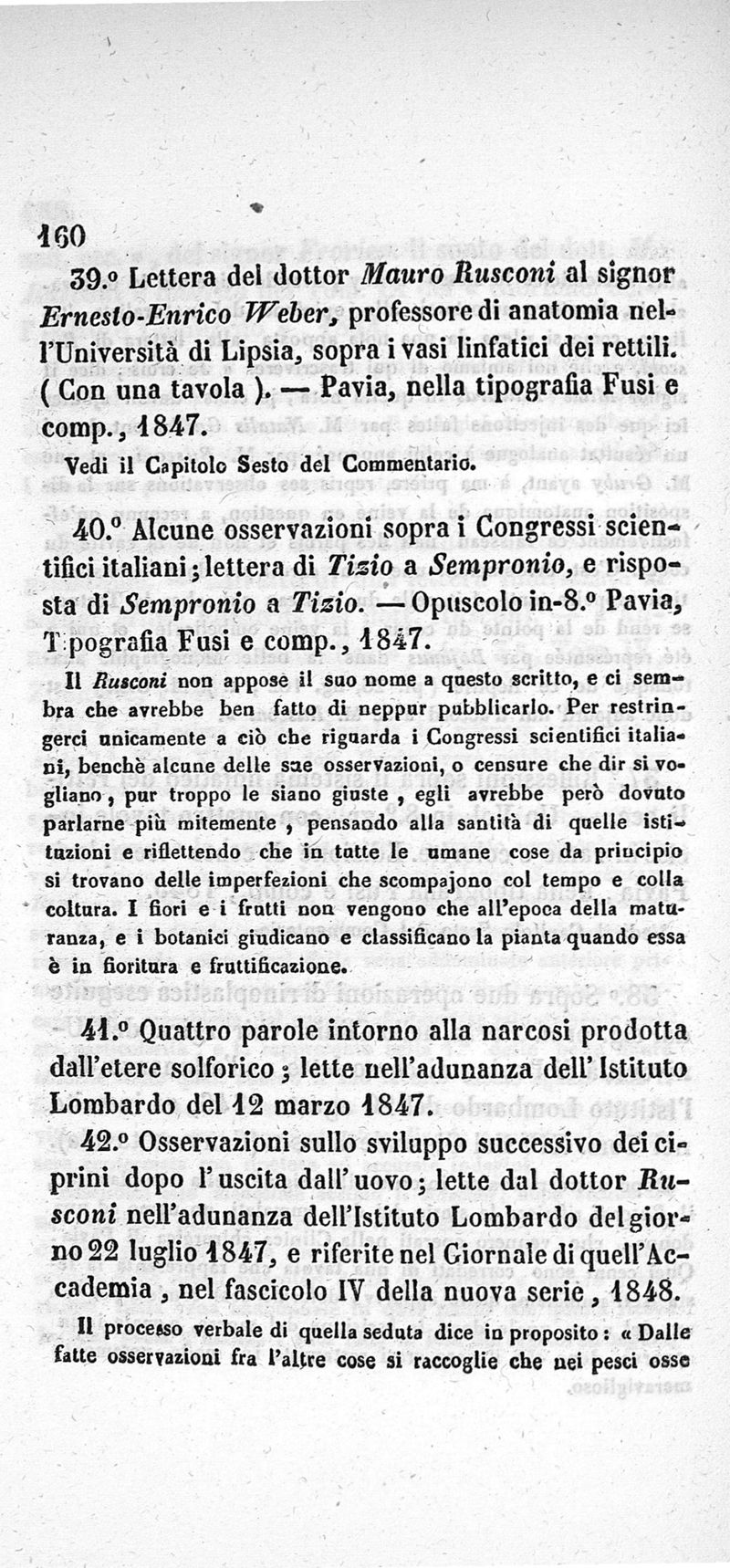 Sulla vita scientifica...del dottore Mauro Rusconi...