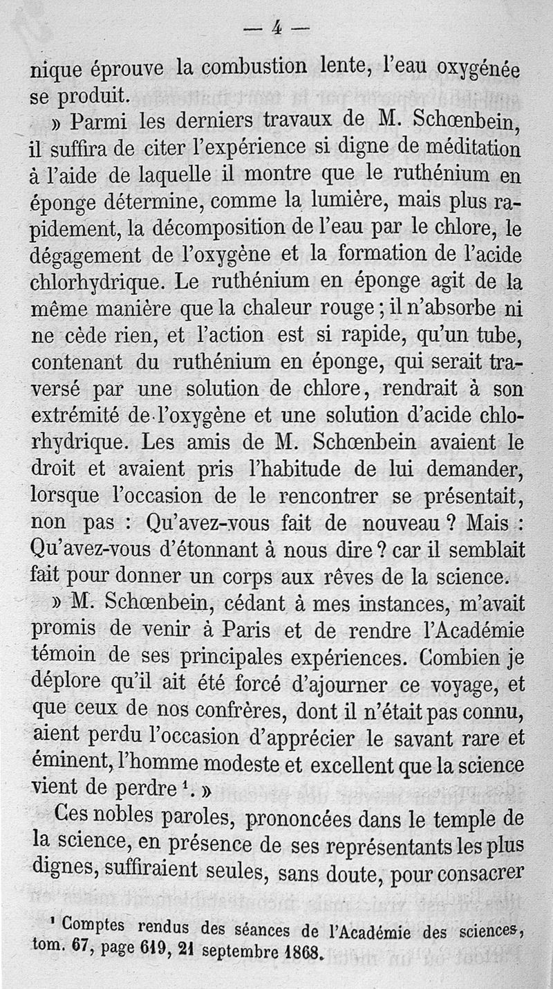 Notice biographique et scientifique sur le Pr Schoenbein, lue le 29 octobre 1868 à la séance de l'Académie impériales des sciences, lettres et arts de Metz