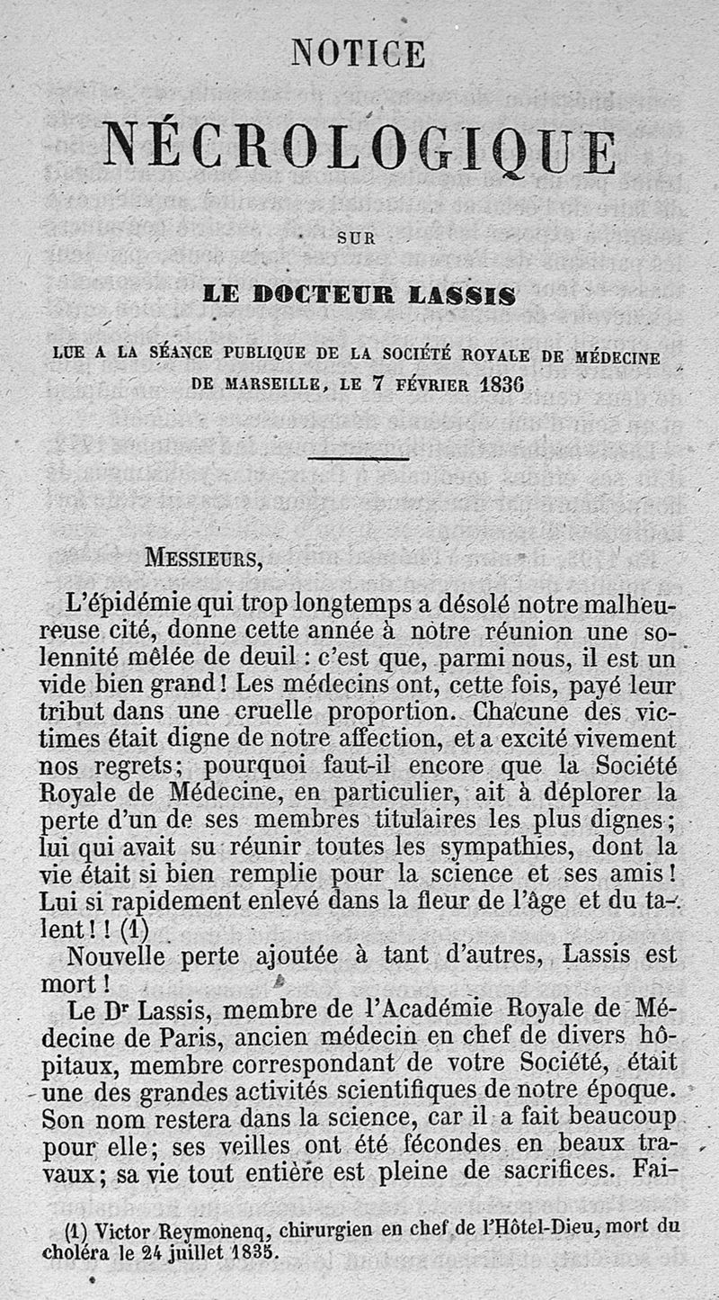 Notice nécrologique sur le Dr Lassis,...