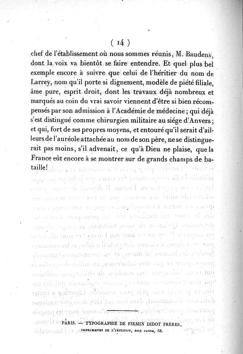 Institut national de France. Discours prononcé au nom de l'Académie des sciences...le jeudi 8 aout 1850, jour de l'inauguration de la statue de Larrey à l'Hôpital du Val de Grâce