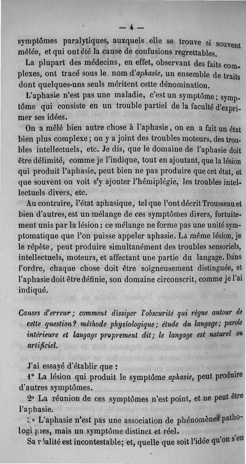 De l'Aphasie