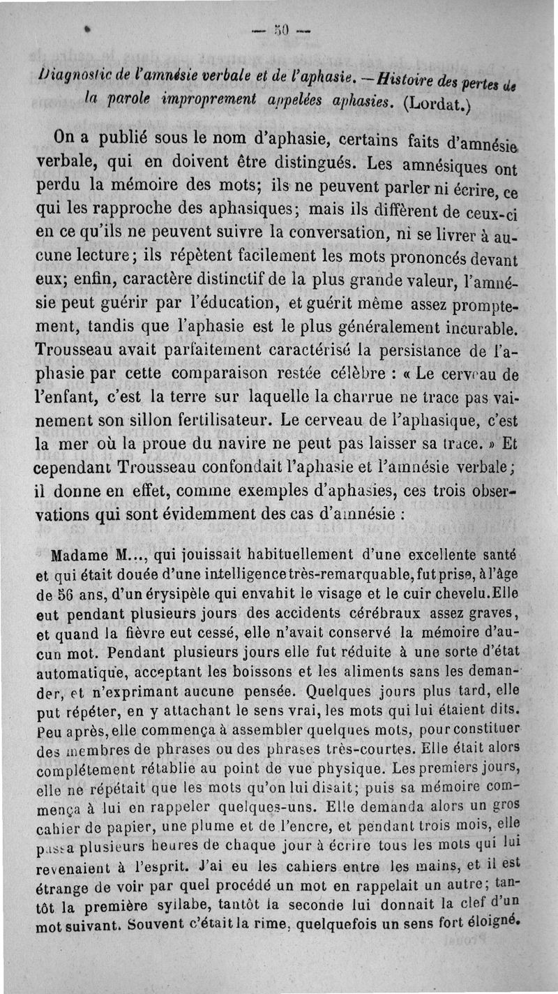De l'Aphasie