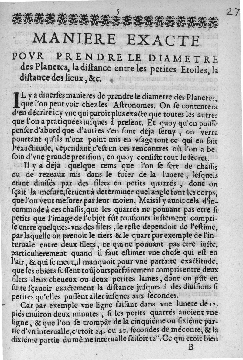 Extrait d'une lettre de M. Auzout... touchant la maniere de prendre les diametres des planetes... Maniere exacte pour prendre le diametre des planetes...