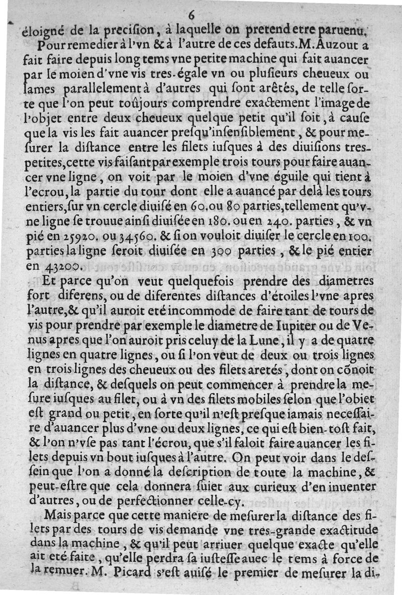 Extrait d'une lettre de M. Auzout... touchant la maniere de prendre les diametres des planetes... Maniere exacte pour prendre le diametre des planetes...