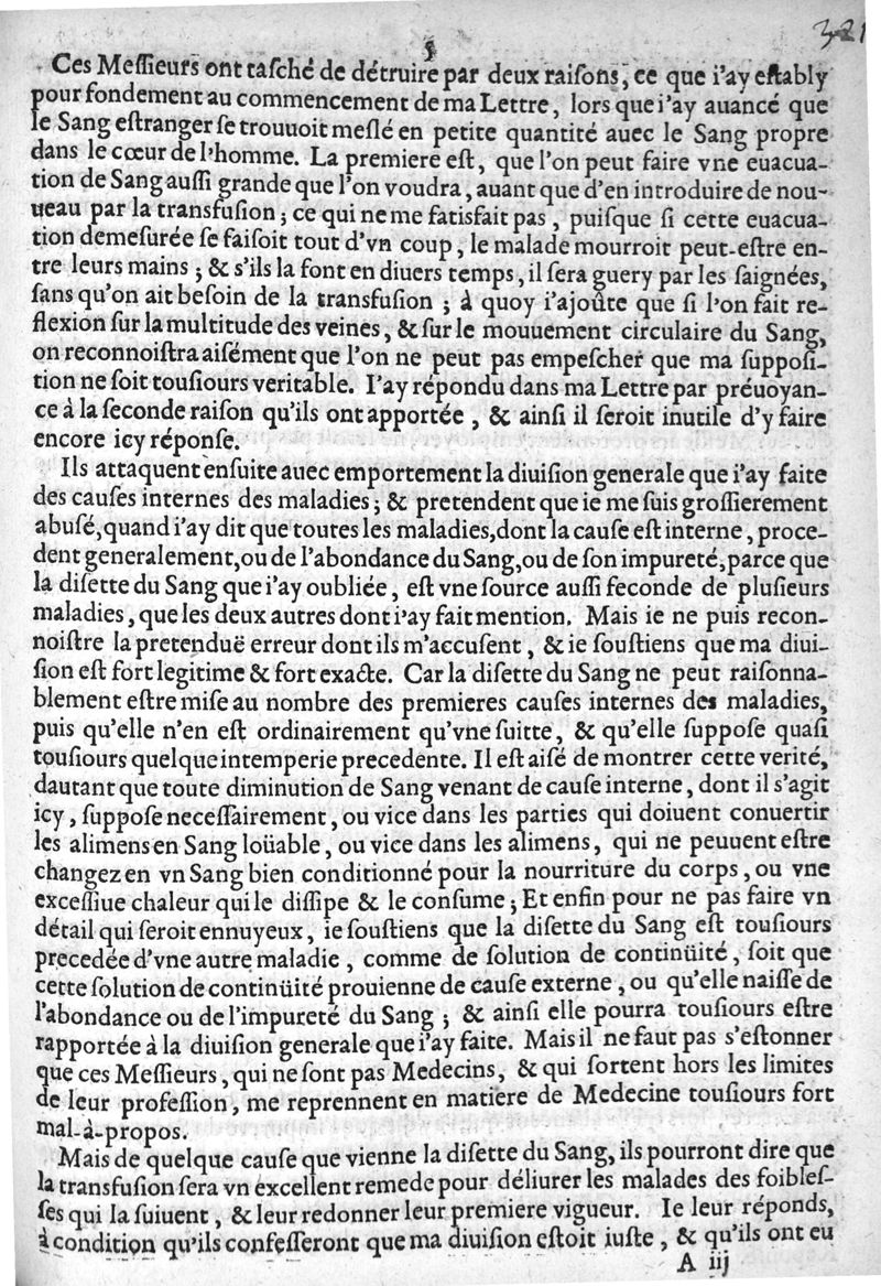 Lettre escrite à Mr Moreau... dans laquelle il confirme les raisons qu'il avoit apportées dans sa première lettre, contre la transfusion du Sang, en répondant aux Objections qu'on luy a faites