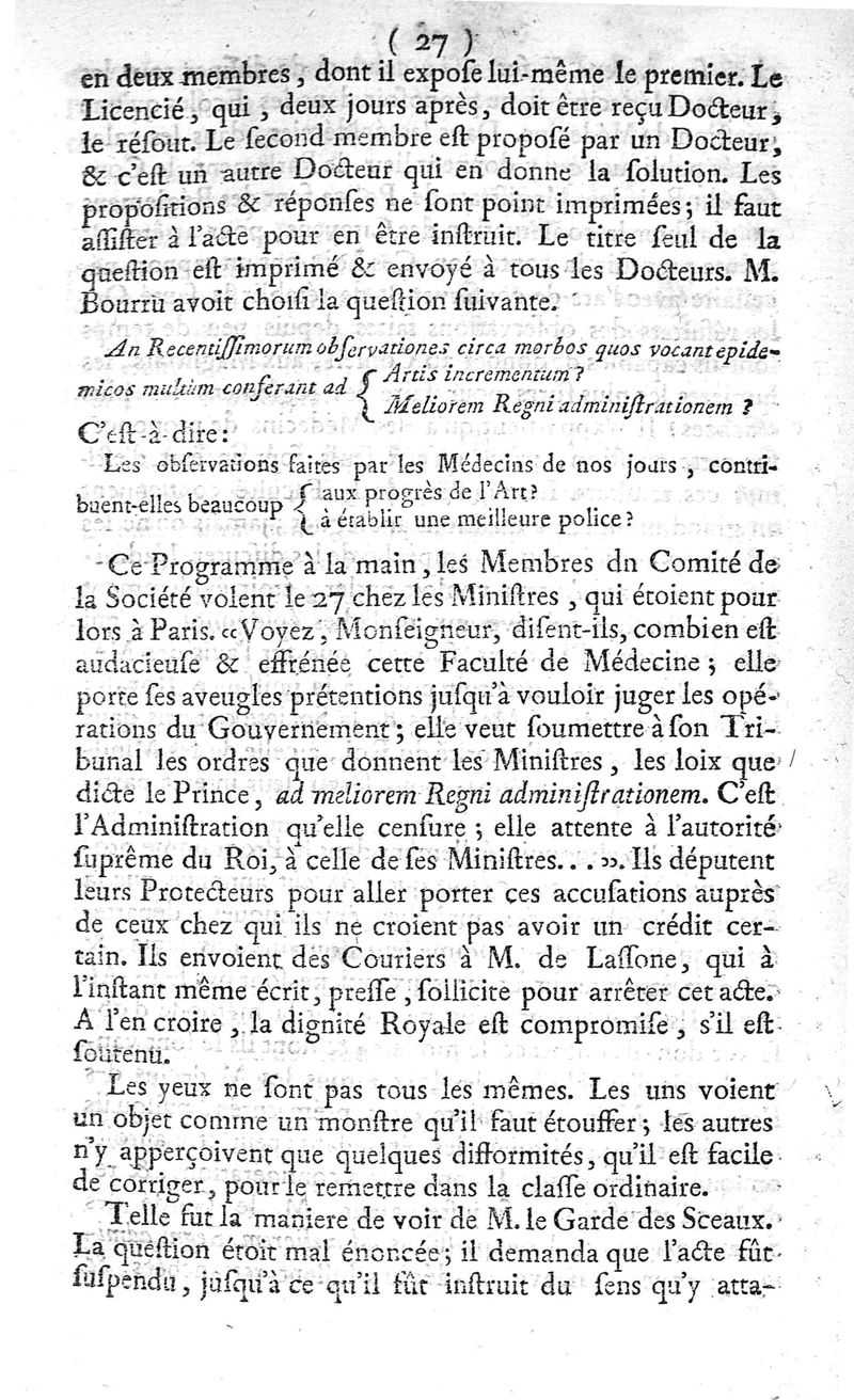 Précis historique de l'établissement de la Société royale de médecine, de sa conduite, et de ce qui s'est fait à ce sujet dans la Faculté de médecine de Paris
