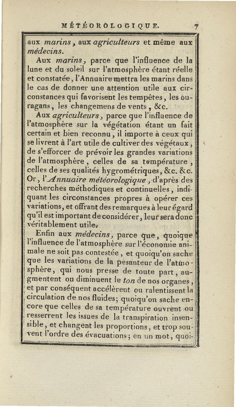 Annuaire météorologique pour l'an XI de l'ère de la République française, à l'usage des agriculteurs, des médecins et des marins &c. présentant la division des mois... par J. B. Lamarck... n° 4