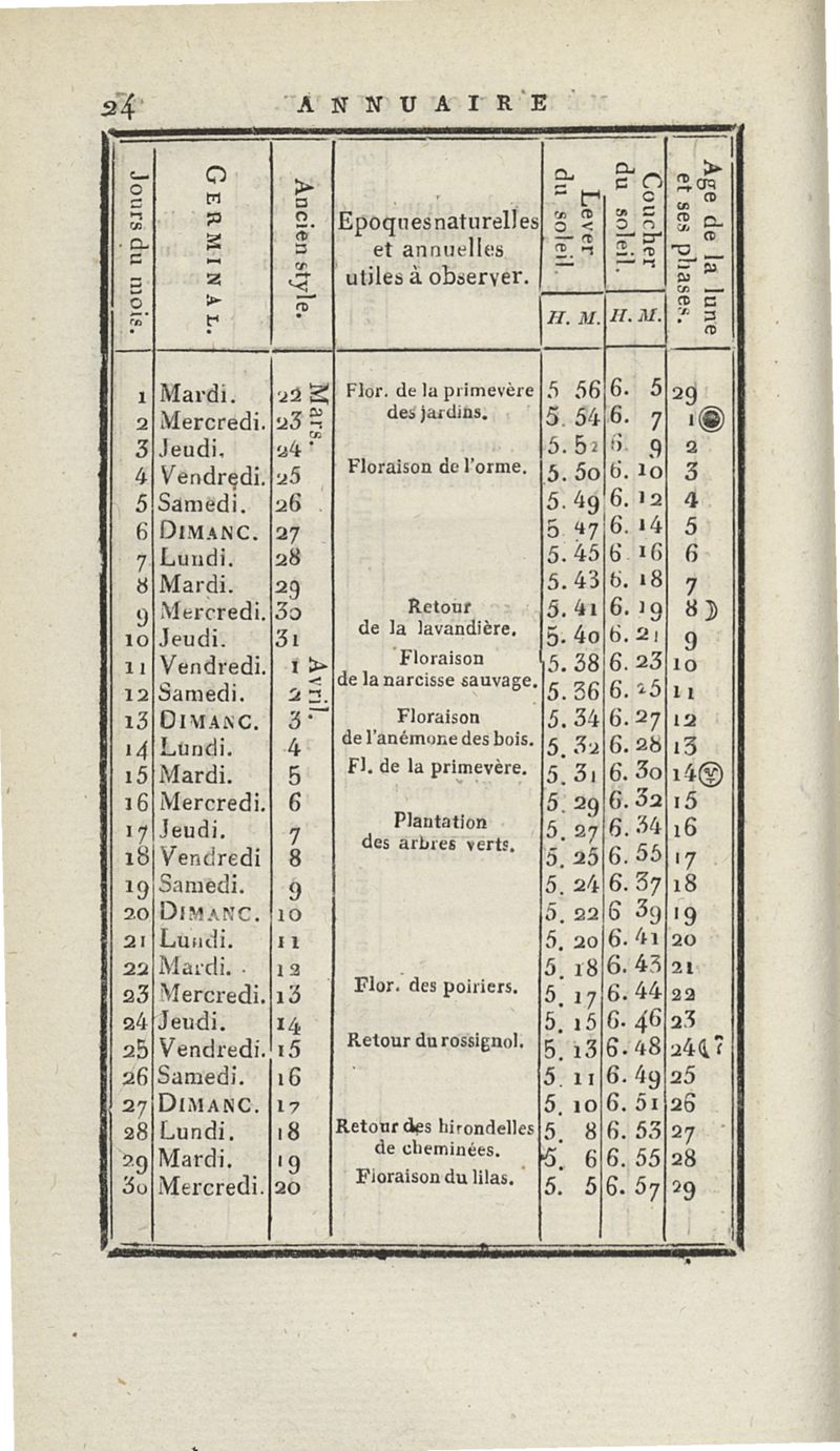 Annuaire météorologique pour l'an XI de l'ère de la République française, à l'usage des agriculteurs, des médecins et des marins &c. présentant la division des mois... par J. B. Lamarck... n° 4