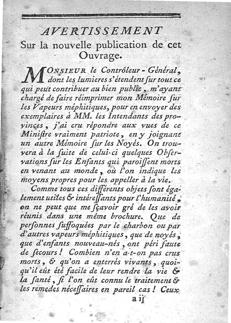Rapport fait par ordre de l'Académie des sciences sur les effets des vapeurs méphitiques dans le corps de l'homme, et principalement sur la vapeur du charbon...