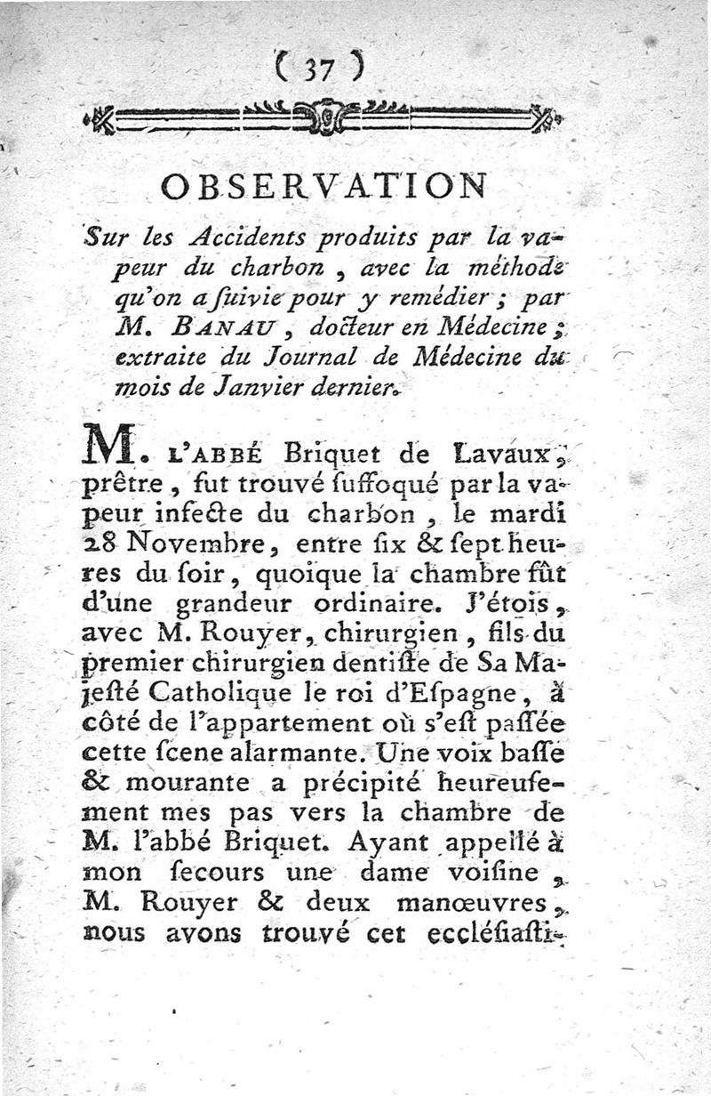 Rapport fait par ordre de l'Académie des sciences sur les effets des vapeurs méphitiques dans le corps de l'homme, et principalement sur la vapeur du charbon...