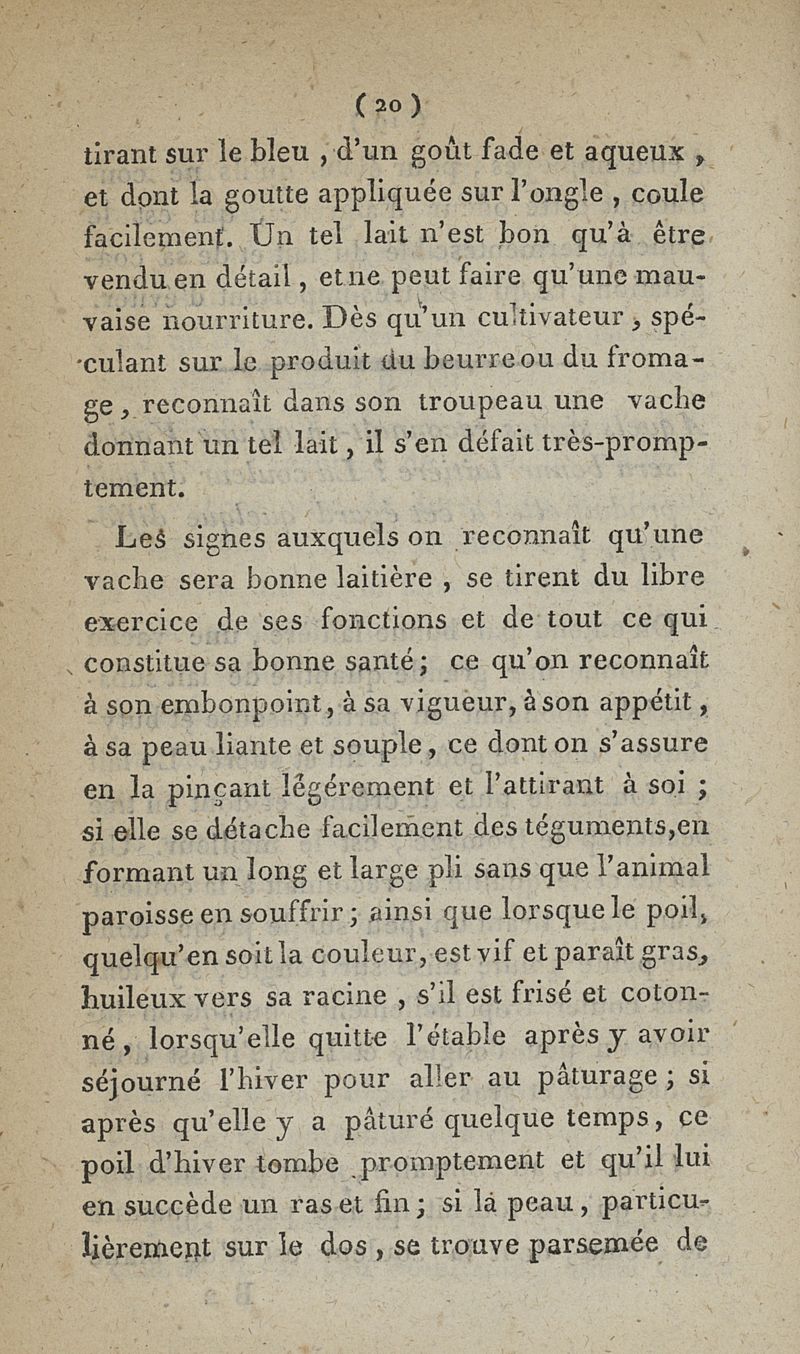 Description des Emplacements qu'il faut choisir de préférence pour la construction des Laiteries, suivie de l'énumération des signes auxquels on reconnaît si une Vache sera bonne laitière