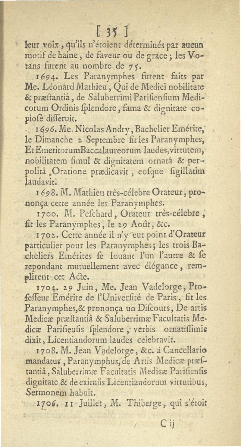 Lettre sur les paranymphes de la Faculté de médecine