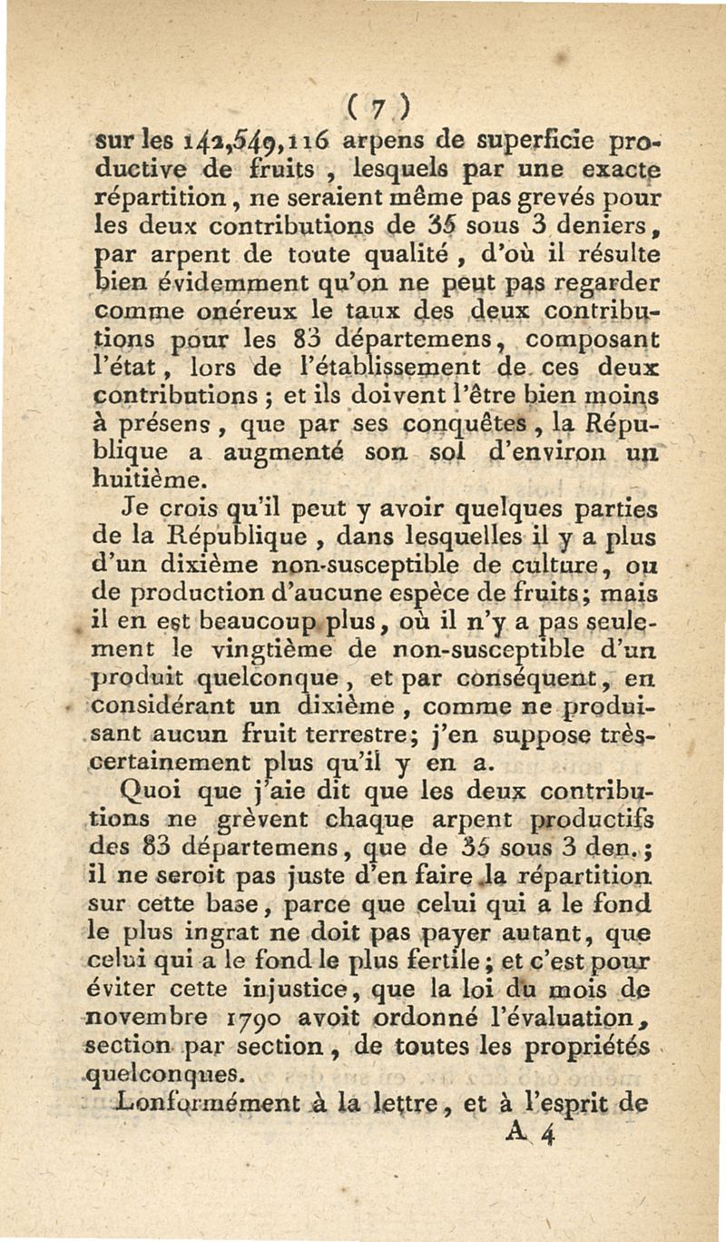 Observations et calculs très importans pour le gouvernement et les gouvernés, sur les contributions foncière et mobiliaire, sur l'organisation des administrations municipales, et sur le droit de passe...